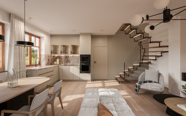 Typ kuchni kuchyňský kout propojený s jídelnou a obývacím pokojem