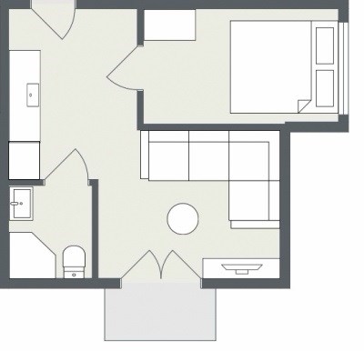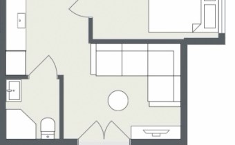 Apartament składa się z pokoju dziennego z aneksem kuchennym, sypialni oraz łazienki. Obecnie lokal jest w trakcie finalnego wykańczania - zrobione zostaną ściany, podłogi oraz cała łazienka, wraz z płytkami, kabiną prysznicową, umywalką i WC.