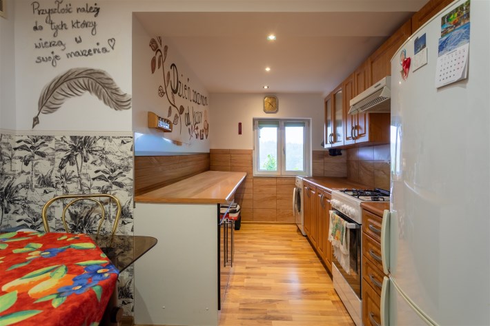 Lokal składa się z przestronnego pokoju dziennego, sypialni, oddzielnej kuchni z jadalnią, łazienki, korytarza oraz dużego pomieszczenia gospodarczego, w którym z powodzeniem przechowasz rowery, narty, sprzęt zimowy czy narzędzia. To idealna przestrzeń dla osób aktywnych i miłośników górskiego stylu życia.