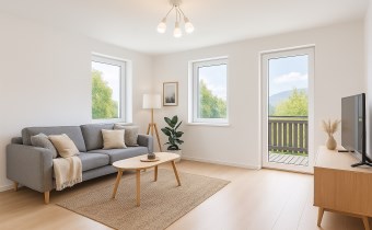 Główna część lokalu to przestronne, trzypokojowe mieszkanie z jasnym salonem i wyjściem na taras, który stanowi idealne miejsce na poranną kawę lub wieczorny odpoczynek. Dwa oddzielne pokoje sprawdzą się zarówno jako sypialnie, jak i przestrzenie do pracy lub pokój dziecięcy. Funkcjonalna kuchnia oraz łazienka dopełniają całość i tworzą przytulną przestrzeń dla rodziny lub pary szukającej większego komfortu.