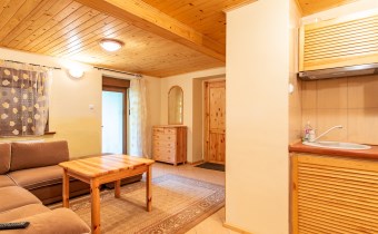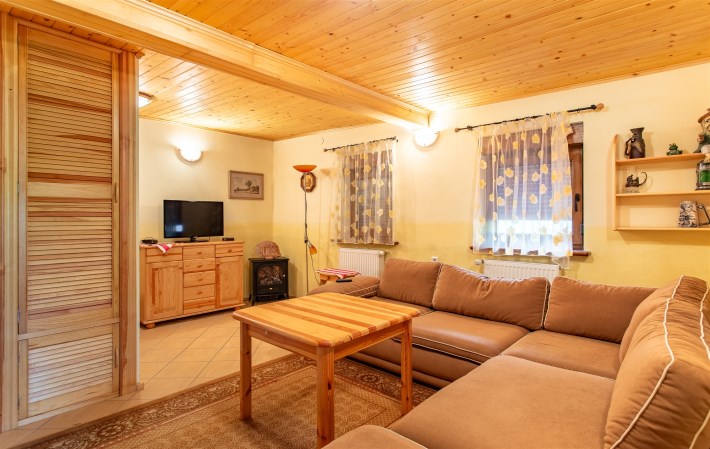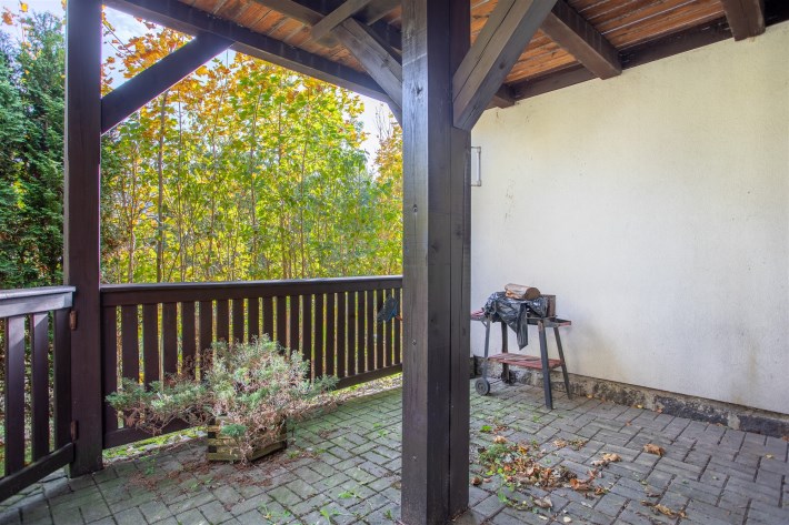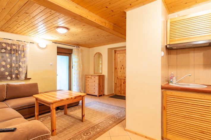Druga część nieruchomości to urokliwa kawalerka z aneksem kuchennym, łazienką oraz tarasem – idealna pod wynajem krótkoterminowy, długoterminowy lub jako niezależne mieszkanie gościnne. Oba lokale, mimo wspólnej księgi wieczystej, funkcjonują niezależnie, co daje ogromną swobodę w ich wykorzystaniu.