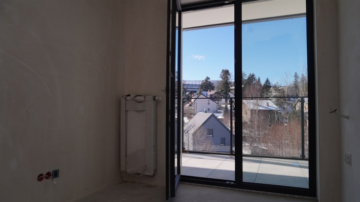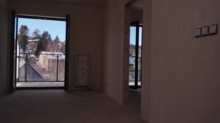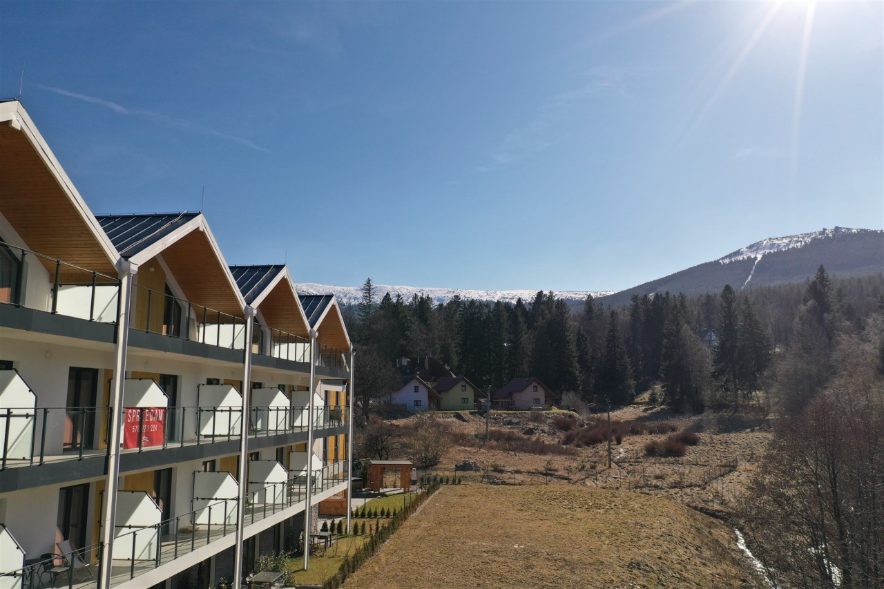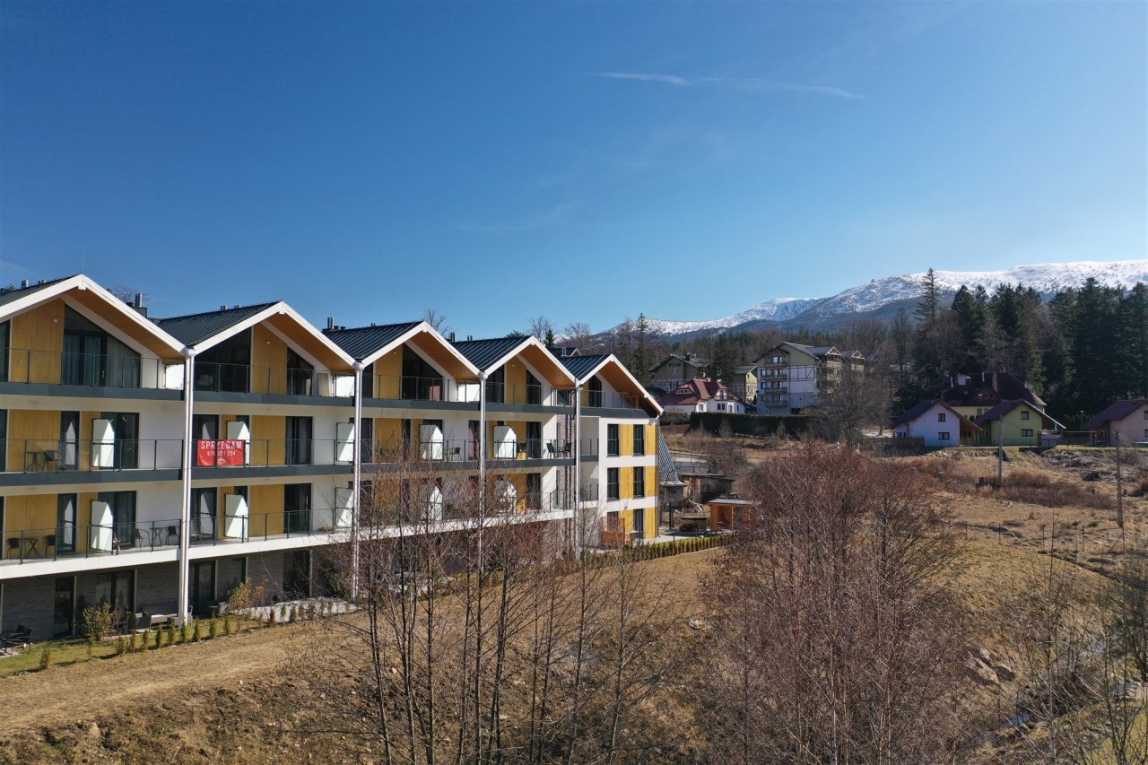 Nowy budynek apartamentowy w samym centrum Szklarskiej Poręby tuż przy nowo budowanym deptaku, który znajduje się zaledwie 250 metrów od budynku.