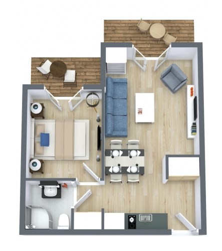 Apartament składa się z przedpokoju, pokoju dziennego z aneksem kuchennym, sypialni oraz łazienki. Obecnie lokal jest w trakcie finalnego wykańczania - zrobione zostaną ściany, podłogi oraz cała łazienka, wraz z płytkami, kabiną prysznicową, umywalką i WC.