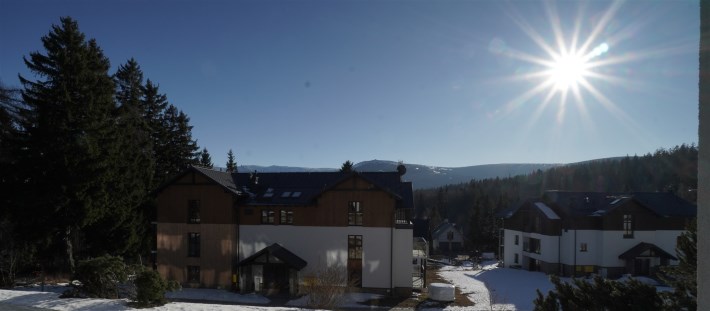 Strona słoneczna, południe. Lokal jest doskonale dośweietlony przez cały dzień, w godzinach popołudniowo wieczornych doskonała widoczność na oświetlone zachodnie ściany Szrenicy i Halę Szrenicką. Piękne widoki.