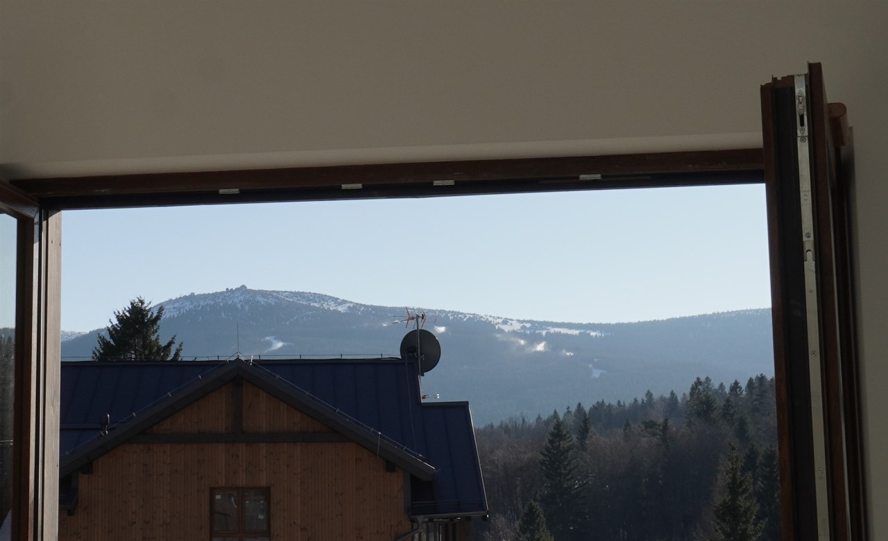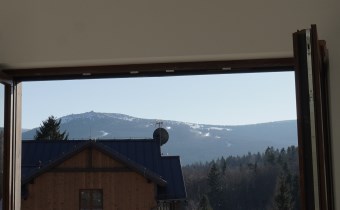 Wprost z okien rozpościera się widok na majestatyczną Szrenicę i Halę Szrenicką.