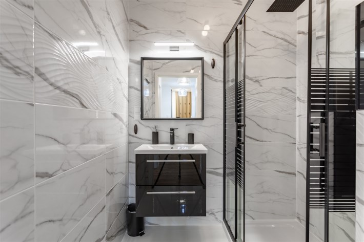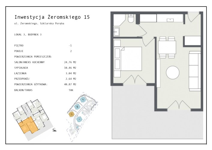 Lokal o przemyślanym układzie znajduje się na pierwszej kondygnacji i oferuje przestrzenny salon z aneksem kuchennym – idealne miejsce do wypoczynku, z wyjściem na duży taras, z którego rozpościera się widok na otaczającą przyrodę, komfortową sypialnię – z indywidualnym zadaszonym tarasem, zaprojektowane tak, by zapewnić maksymalny komfort i prywatność, stylową łazienkę – wykończoną wysokiej jakości materiałami.