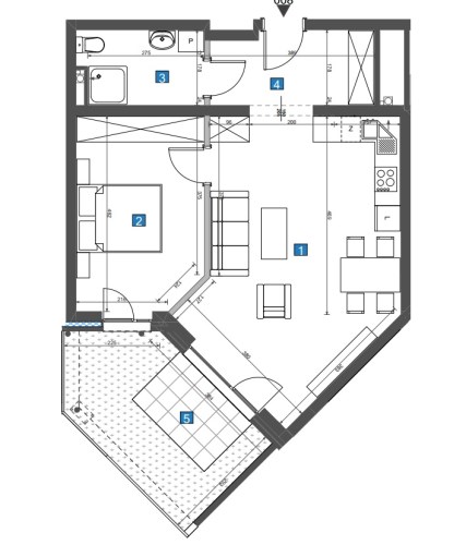 Apartament 2 pokojowy. Salon z aneksem + sypialnia, garderoba i łazienka.