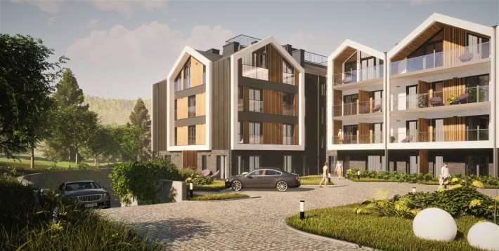 Apartamenty Belle View to nowy budynek apartamentowy w samym centrum Szklarskiej Poręby tuż przy nowo budowanym deptaku, który znajduje się zaledwie 250 metrów od budynku.