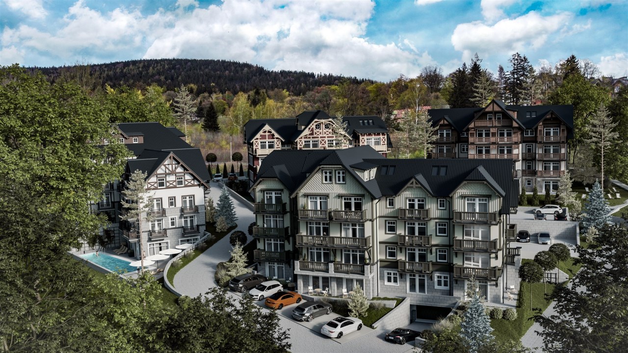 Projekt DOLINA PARK RESORT jest to kolejna inwestycja miejscowej spółki zlokalizowana jest w najbardziej kameralnej i widokowej części miasta z bajecznym widokiem na panoramę Karkonoszy.