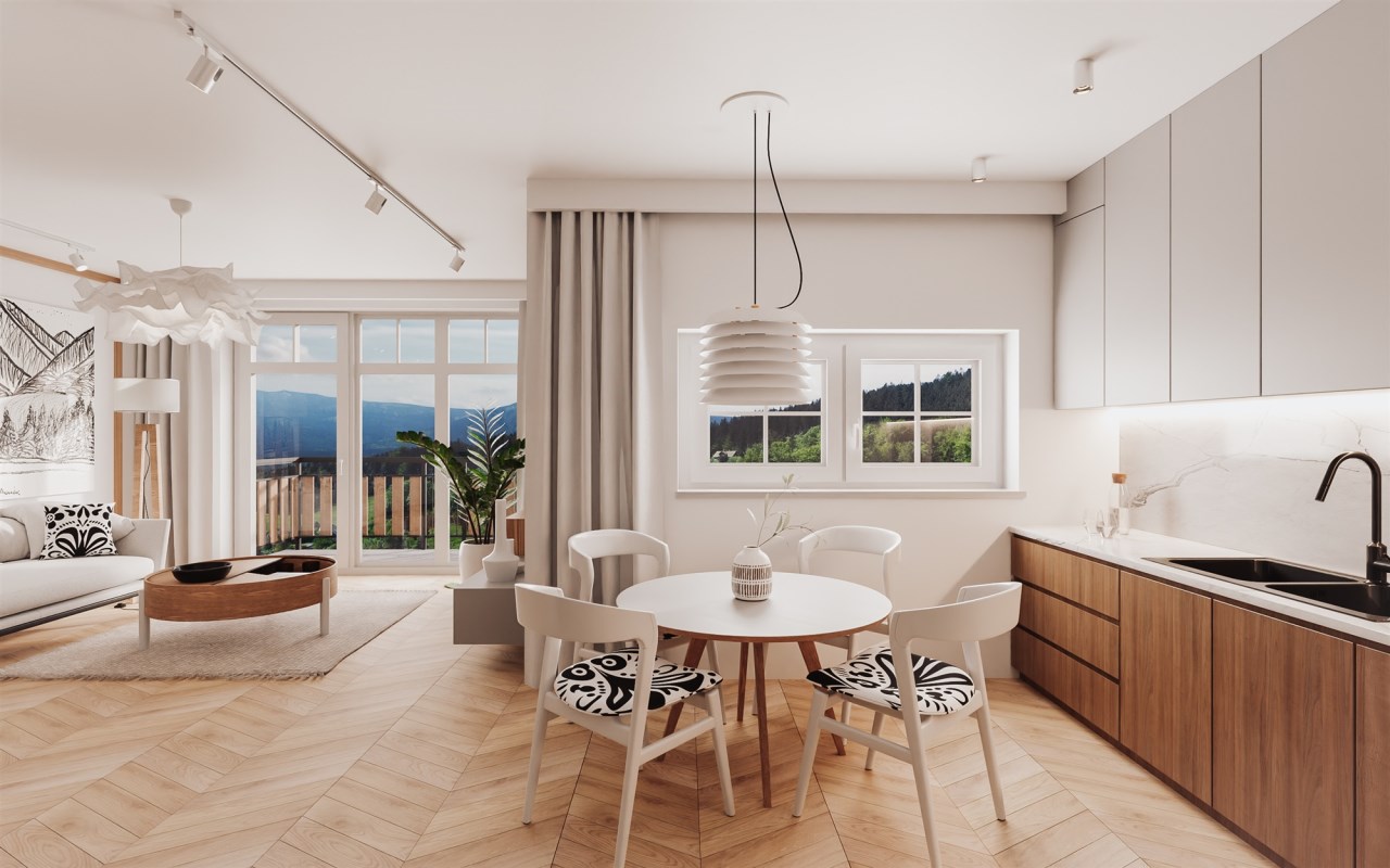 Nowoczesna a zarazem regionalna Sudecka architektura budynków, która zaprojektowana została z dbałością o każdy detal nadaje budynkom niepowtarzalności a majestatyczne pejzaże, które dominują nad lokalizacją inwestycji są jedyne w tej części miasta.