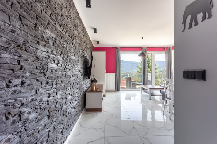 Są miejsca, które od pierwszej chwili budzą zachwyt - i to jest jedno z nich. Apartament położony w malowniczej części Szklarskiej Poręby, gdzie panorama Karkonoszy staje się codziennym tłem życia. Tu przestrzeń, światło i natura przenikają się na każdym kroku, tworząc wyjątkowy klimat górskiego stylu życia.