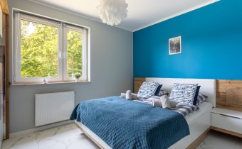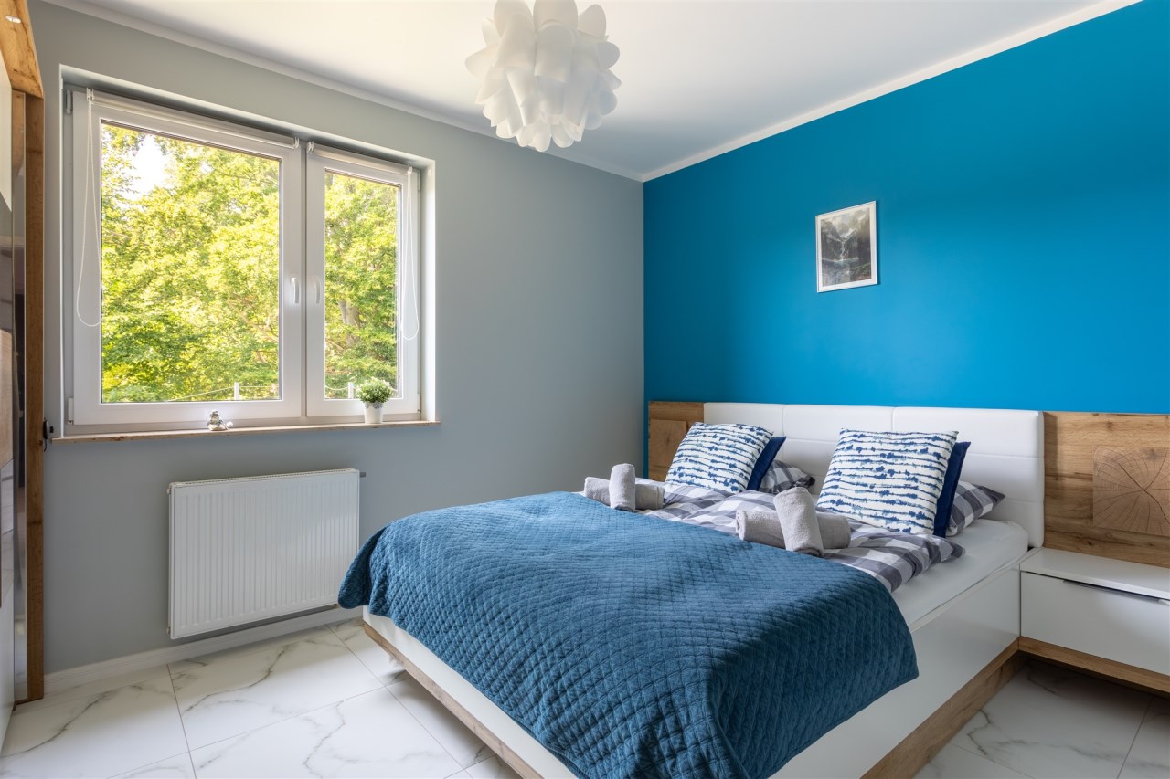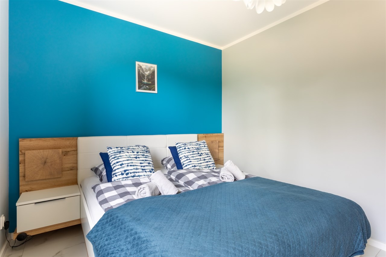 Apartament oferuje także dużą, komfortową sypialnię z oknem wychodzącym na zachód - idealną na odpoczynek po dniu pełnym górskich przygód.